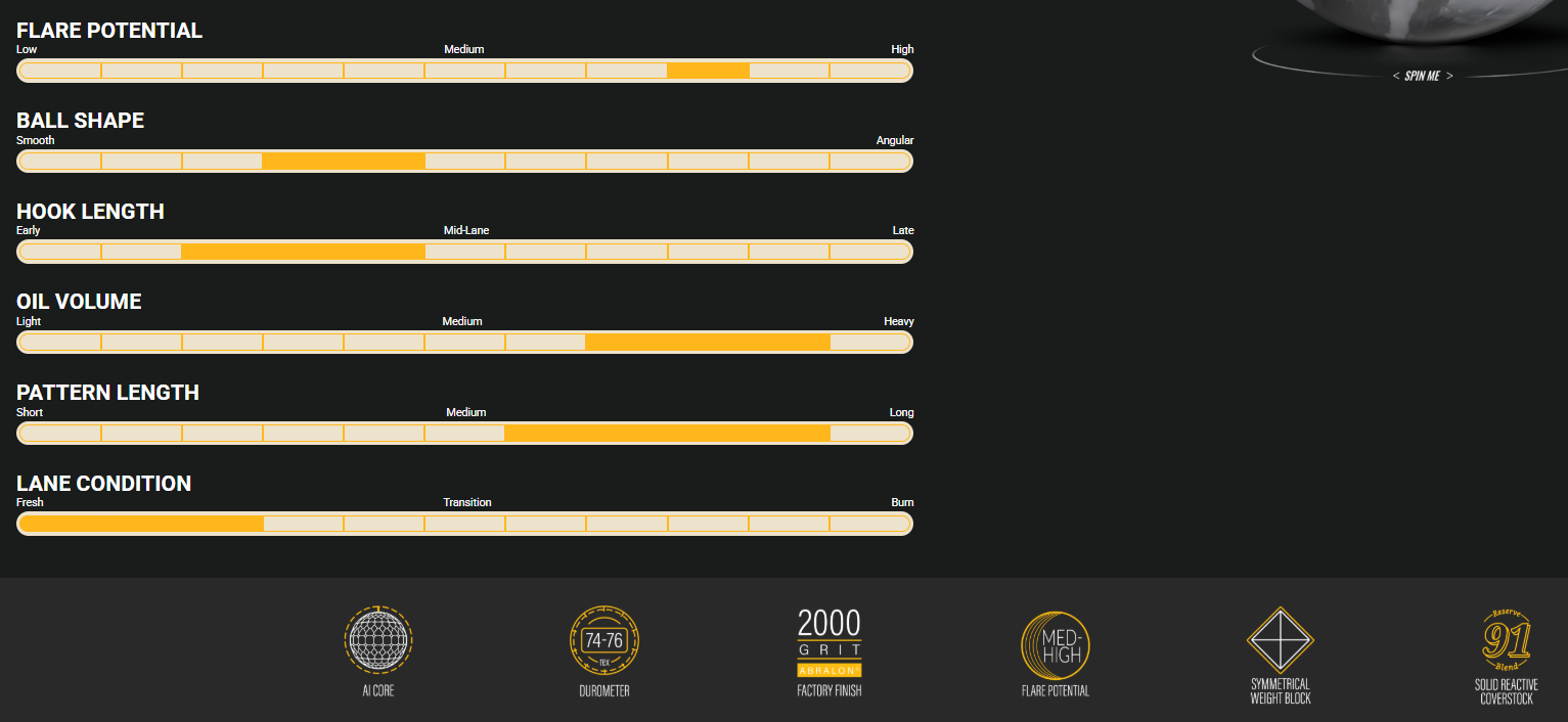 The Blast A.I. Core features the highest differential in the 900 Global line, using a single-density shape to create a strong, predictable mid-lane read while saving energy for the back end. Translation: it doesn’t panic early, and it doesn’t quit late. You get shape you can trust, even when the lanes stop cooperating.