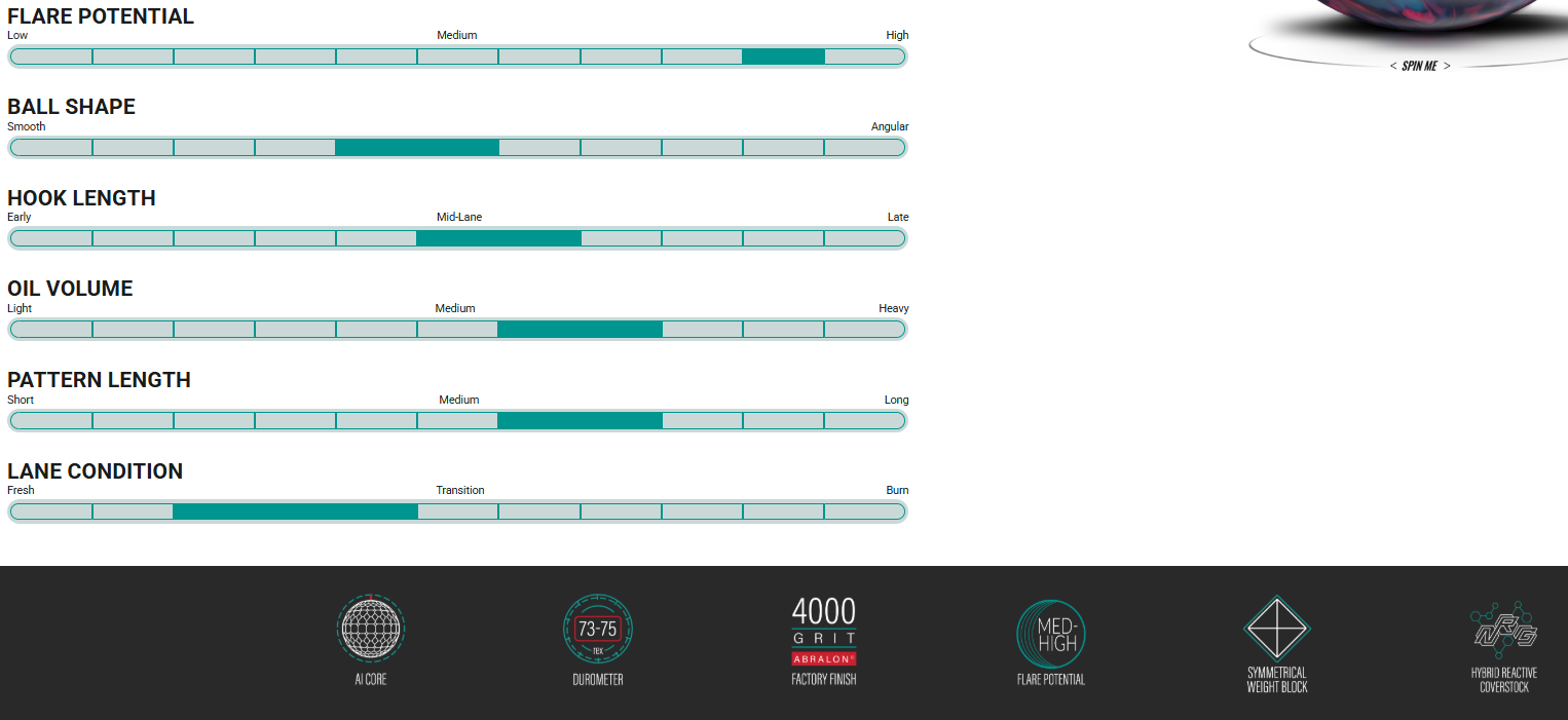 At the heart of the Bionic is the Torsion™ A.I. Core, an evolution of the Element Max™ Core. Its symmetrical, rotated stacked ellipse design maintains low RG stability while delivering a smooth, controllable arc. The center-heavy mass and flip block work together to create the unmistakable Storm motion off the end of the lane, giving bowlers confidence in every shot.