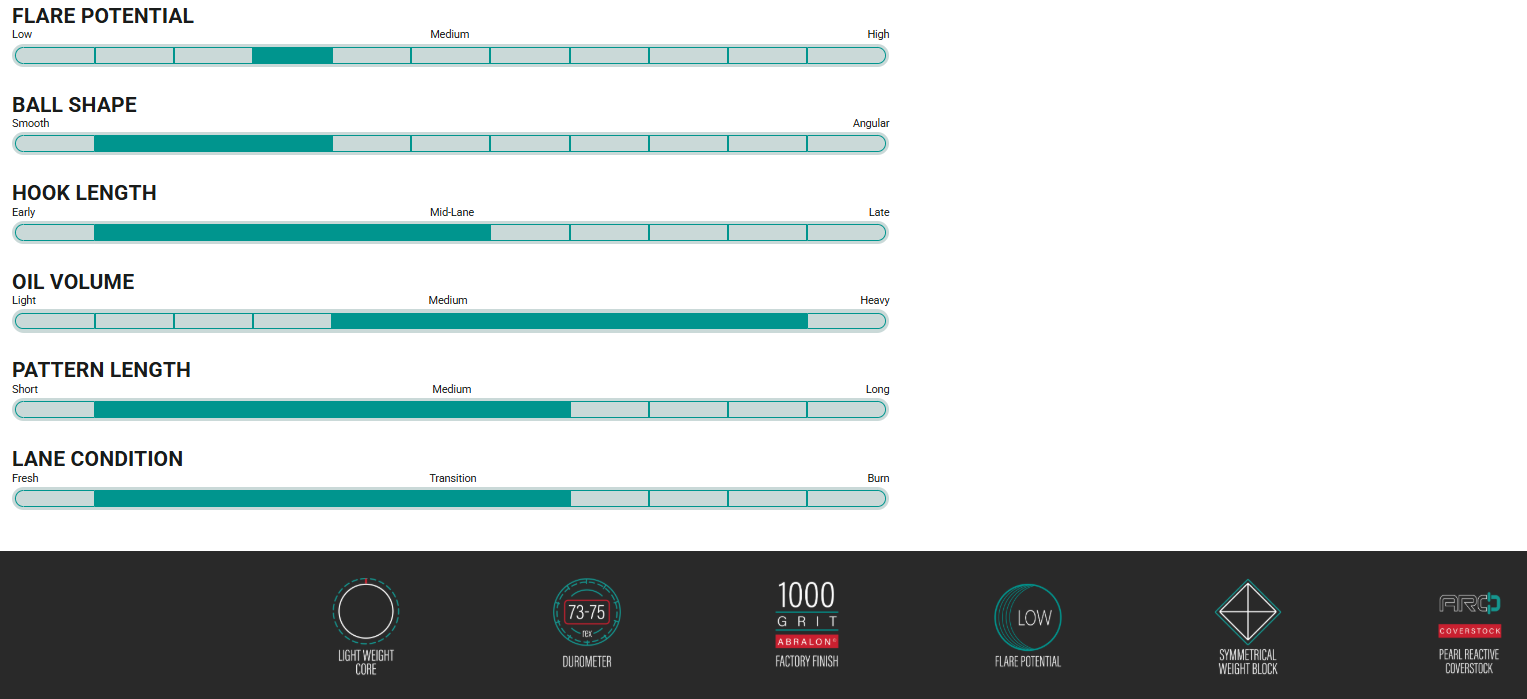 The Concept’s ARC™ Coverstock delivers the urethane-style motion that sets it apart. Its advanced pearl formulation contains mica, which tested better than the solid version, digging into oil more effectively when finished at the same surface grit. This allows the ball to maintain smooth, predictable motion across a wide range of lane conditions, helping it carry through the pins with consistent, lively action. Tunable and reliable, the ARC™ Coverstock ensures bowlers can achieve their desired shape on short patterns or flat, demanding conditions.
